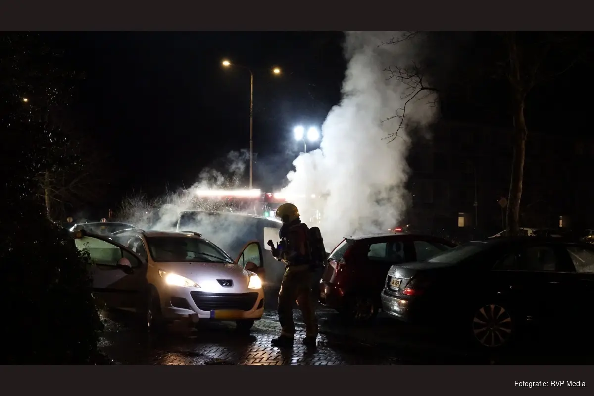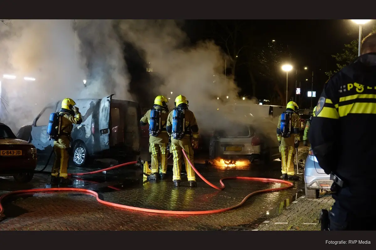 Op een parkeerplaats stond zowel een bestelbusje als een personenauto in brand. De brand werd binnen enkele minuten opgeschaald naar middelbrand.