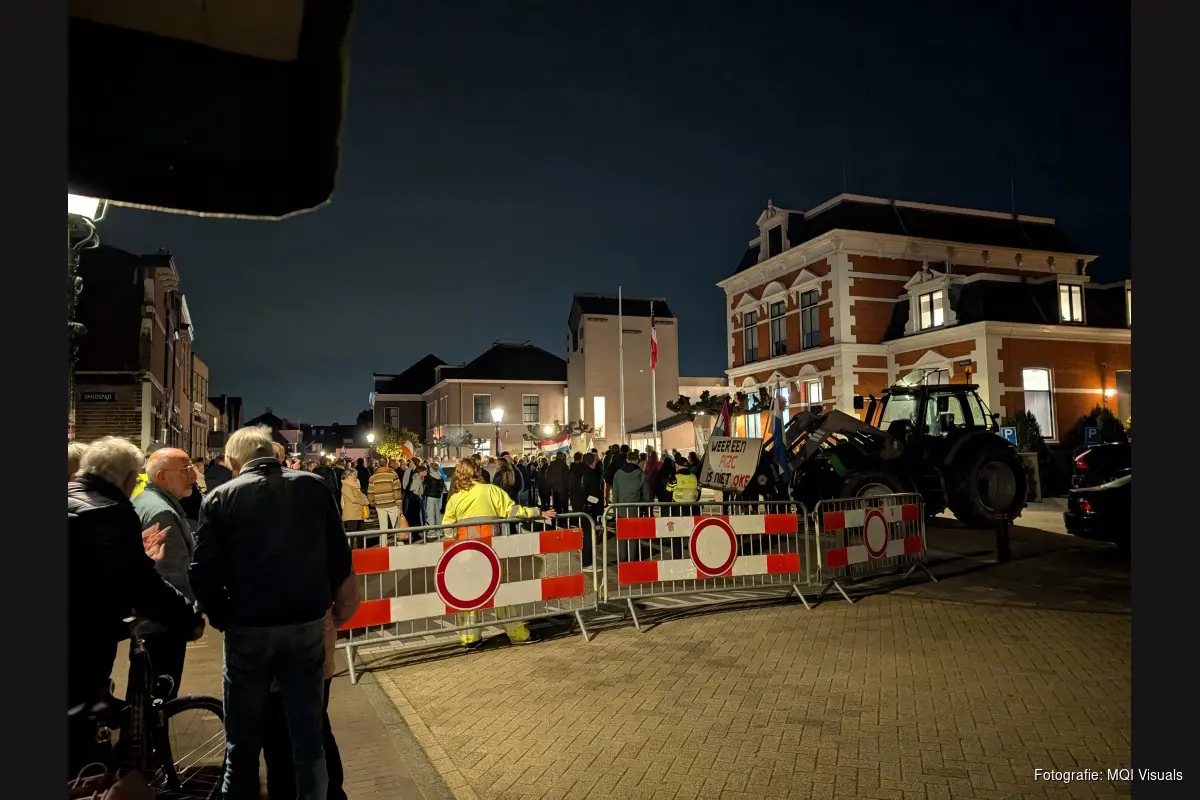 Update 20.45 uur: Inmiddels is er (zwaar) vuurwerk afgestoken waardoor een raam van het gemeentehuis is gesneuveld.
