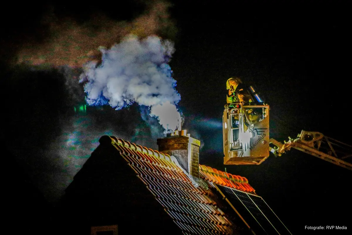 De brand woedde in het schoorsteenkanaal van de woning en veroorzaakte fikse rookontwikkeling die vrij kwam uit de schoorsteen. De brandweer heeft in de woning onderaan de schoorsteen geblust. Met een autoladder is vanaf boven de schoorsteen ook geveegd, hier kwamen ook vonken bij vrij. Niemand raakte gewond.