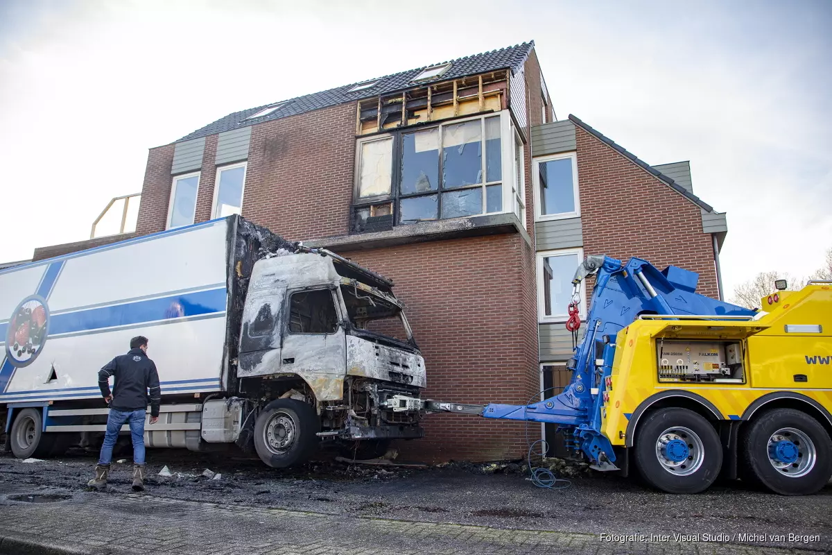 Omstreeks 03.00 uur kreeg de politie melding van een voertuigbrand op de hoek van de Daltonstraat met de De Visserstraat. Ter plaatse bleek een vrachtwagen in brand te staan. Omdat het voertuig dicht bij de gevel van een bedrijfspand met bovenwoning geparkeerd stond, waren de vlammen overgeslagen en stond een kozijn van het pand al in brand. Een bedrijfsauto, die dicht bij de vrachtwagen geparkeerd stond, raakte ernstig beschadigd.