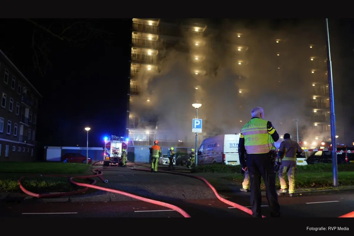 HEEMSKERK - In de nacht van donderdag op vrijdag is de brandweer omstreeks 02.30 uur opgeroepen voor een grote brand in een flat aan de Jan Ligthartstraat. Bij aankomst van de brandweer bleek het te gaan om een brand in een woning op de tweede etage van een acht tellende etages hoge flat.