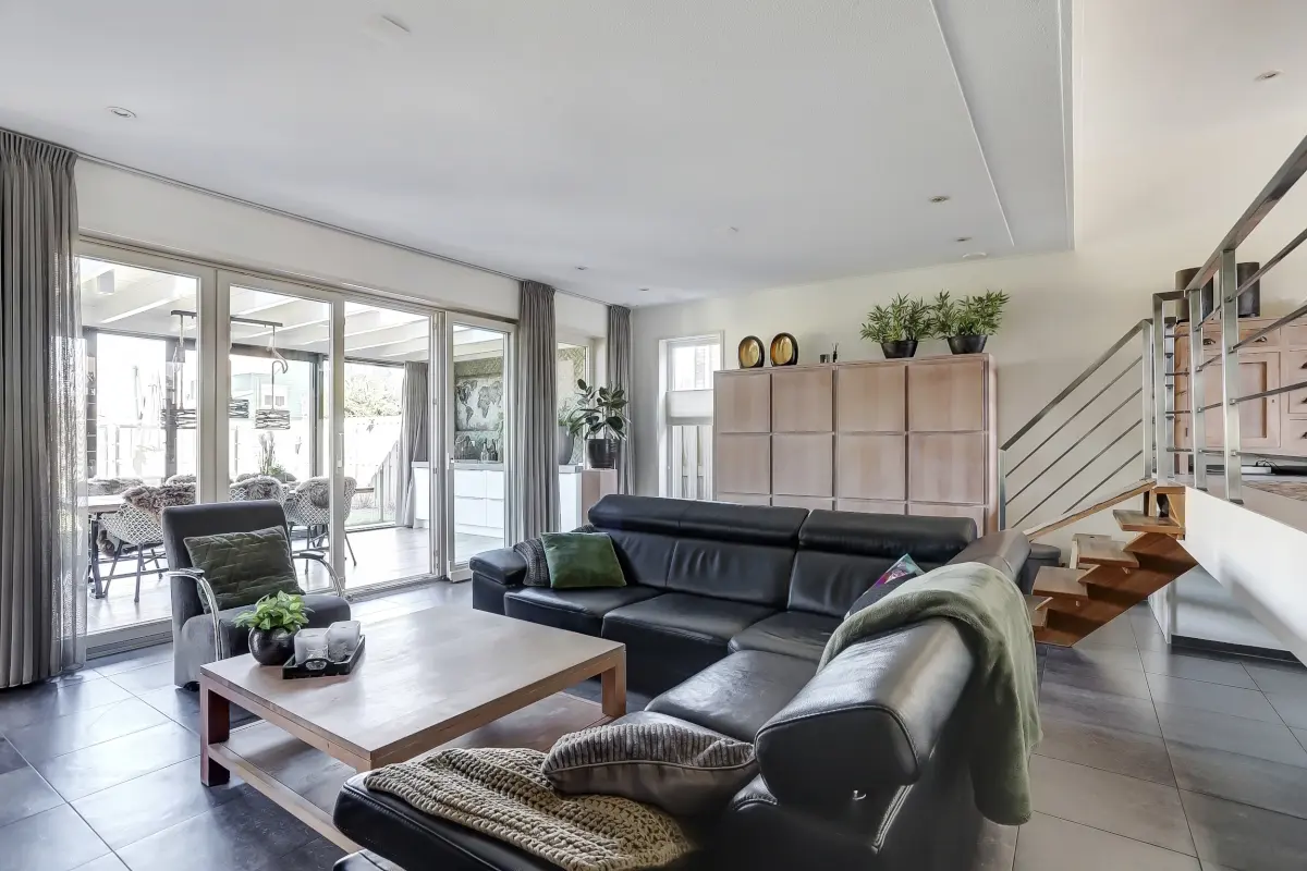 ). Deze is voorzien van vloerverwarming, strakke wanden en een deels verlaagd plafond met inbouwspots. De open keuken is het hart van het huis met voldoende ruimte om samen te koken en te dineren. In 2024 is de keuken voorzien van nieuwe fronten en apparatuur, zodat alles modern en gebruiksklaar is. De speelse indeling zorgt ervoor dat iedereen zich hier gelijk thuis voelt.DE TUINKAMER EN HET BUITENLEVEN