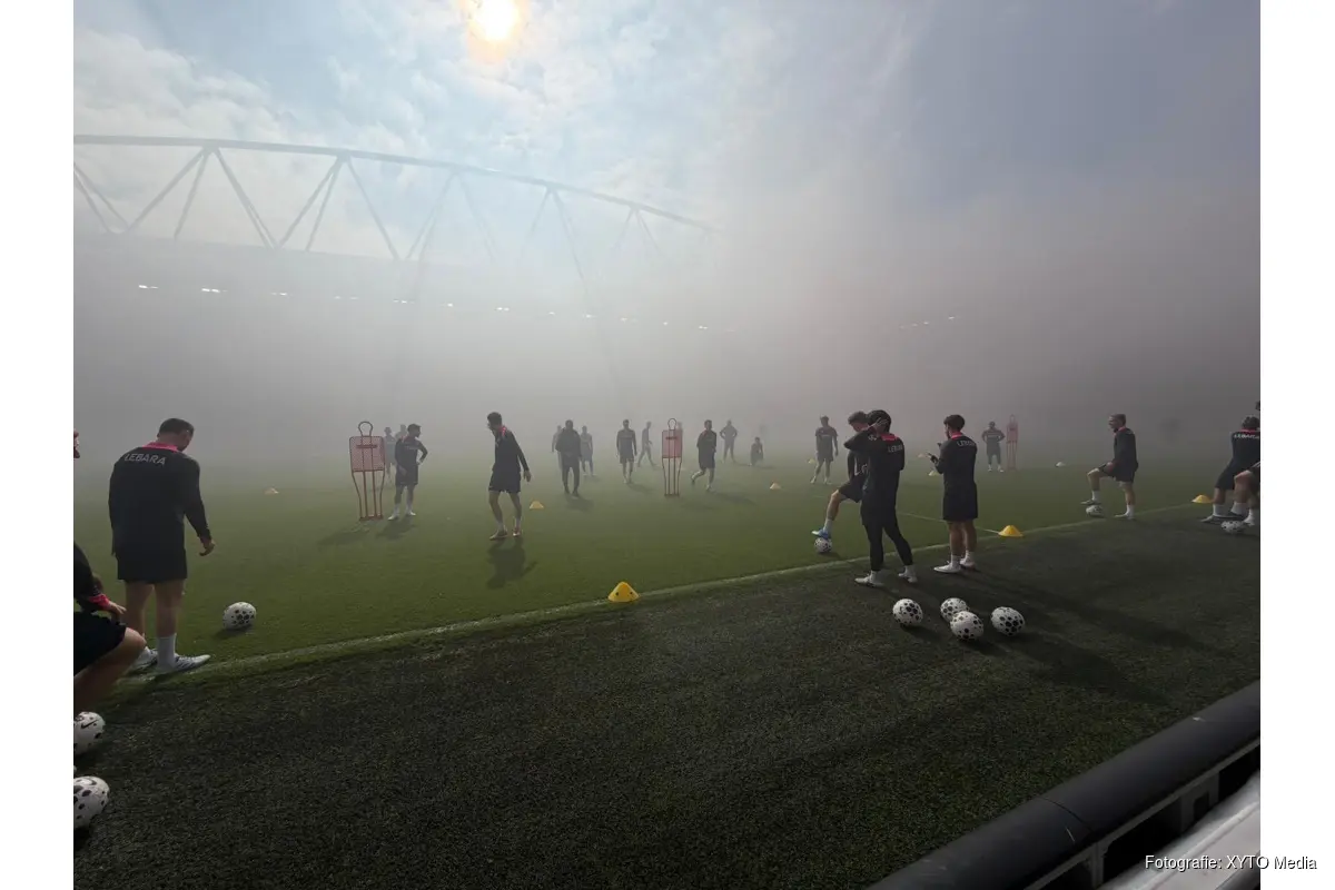 Het zorgde voor een prachtige sfeer in het stadion en vele supporters steunden de ploeg tijdens de laatste training voor men morgen naar Rotterdam vertrekt.